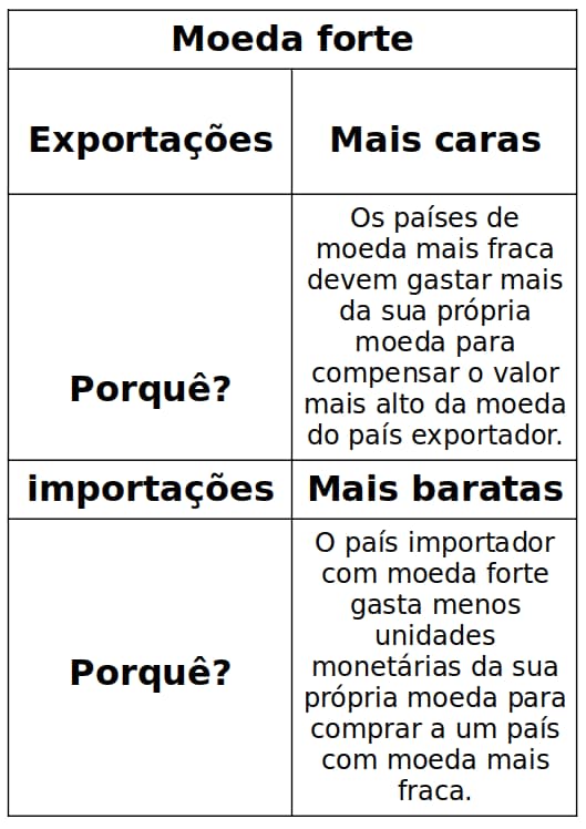 2 Quando um país com moeda mais fraca compra a um país com moeda forte, tem que usar muito mais da sua moeda para compensar o valor da moeda forte.