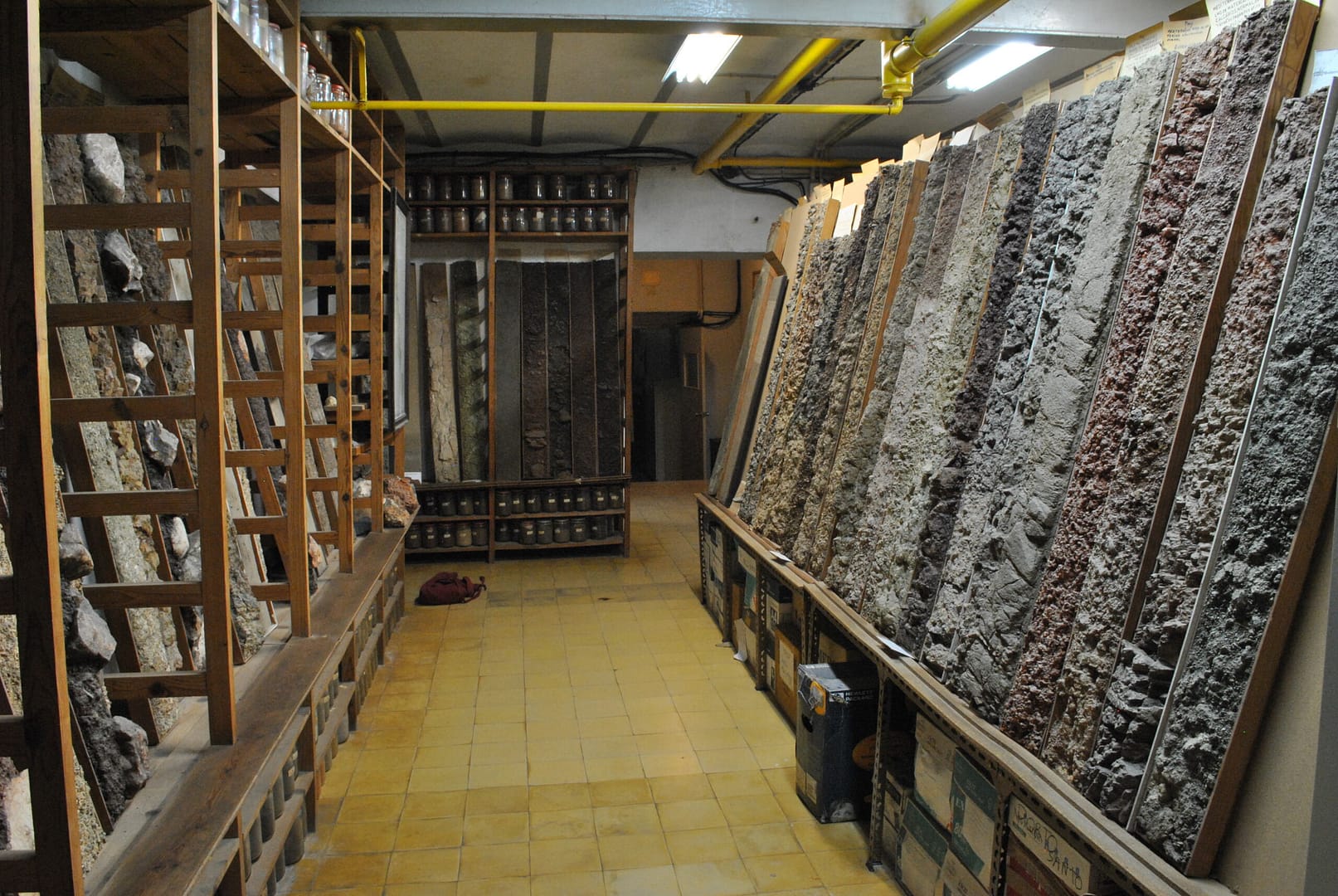 Espaço central da pedoteca no ISA, em Lisboa. À direita, o conjunto de monólitos extraídos do Alentejo. Agosto 2016.